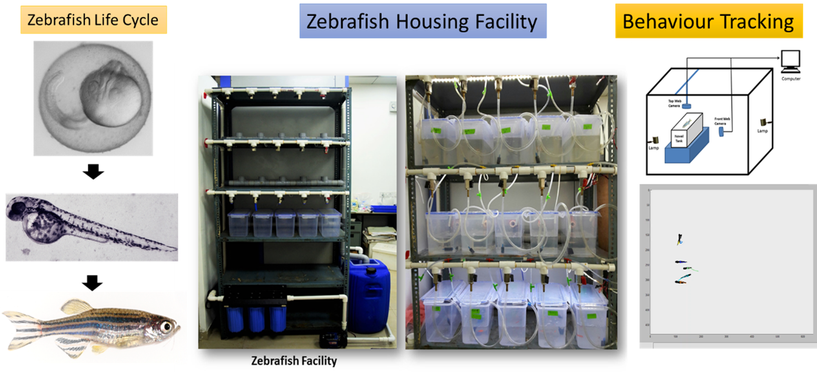 We have established a very low-cost zebrafish facility that can accommodate up to 300 fish. The zebrafish facility contains several filtration units to control the water quality advisable for zebrafish. Additionally, we have developed an automated zebrafish tracking system for the behavior assessment with the help of indigenously developed MATLAB code.